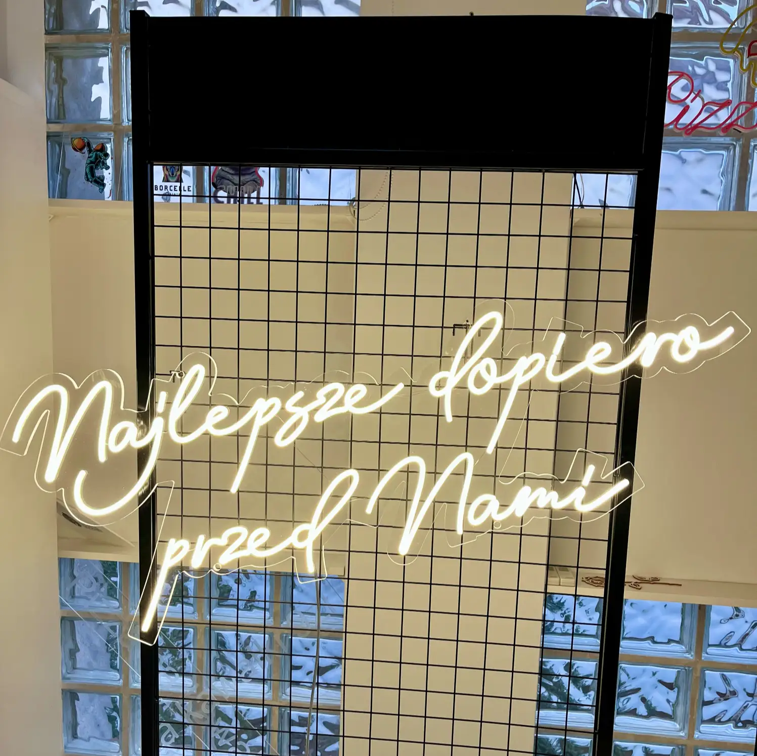 Neon LED na wesele z napisem „Najlepsze dopiero przed Nami” Romantyczna dekoracja ślubna!